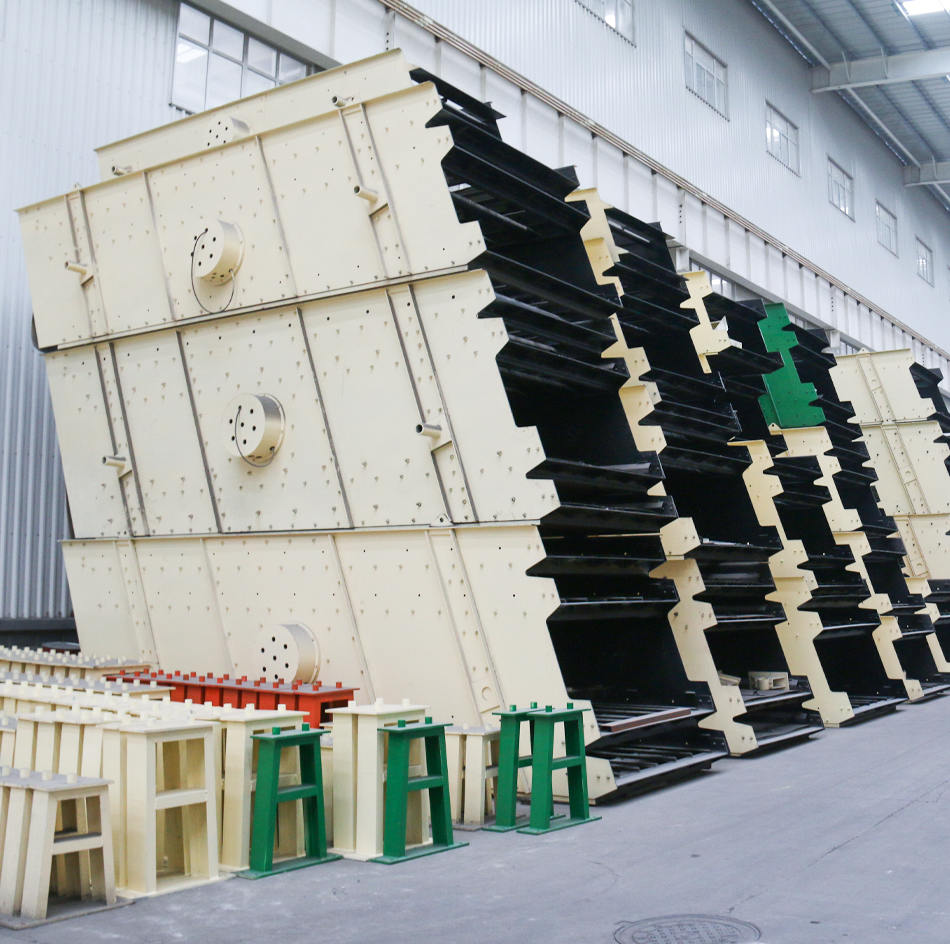 圓振動篩采用塊偏心作為激振動力,且激振力特別強;篩子橫梁與篩箱采用高強度螺栓聯(lián)接,無焊接;以及篩框由松木或變形量較小的木材制成,主要用來保持篩網(wǎng)平整,達到正常篩分。