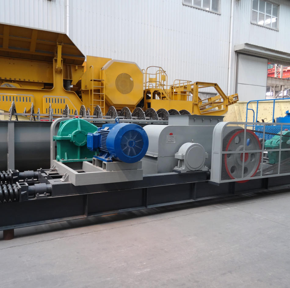 破碎輥齒采用特殊螺旋排列,既便于符合粒度要求的物料排出,又使齒輥同時受力的輥齒數量減少,有利于破碎大塊物料。同時利用齒輥與襯板和顎體的雙重作用實現對物料的破碎,減少輪齒工作量,提高破碎效率,延長整機使用時間。